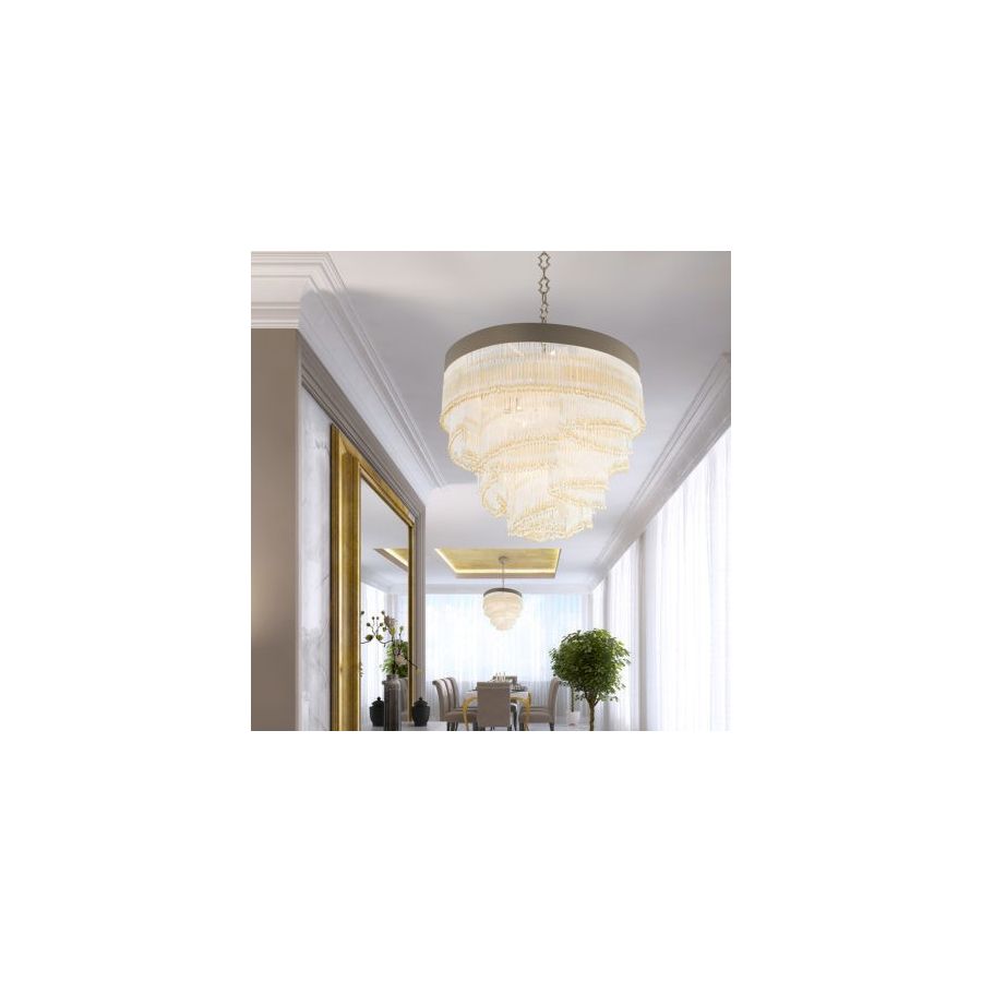 | Diameter available | h 55 - 120, Ø 60 cm - 10 x G9 LED max 12W h 65 - 130, Ø 80 cm - 16 x G9 LED max 12W h 70 - 134, Ø 100 cm - 28 x G9 LED max 12W h 172,5 - 214, Ø 110 cm - 40 x G9 LED max 12W h 75 - 139, Ø 120 cm - 28 x G9 LED max 12W h 85 - 149, Ø 150 cm - 30 x G9 LED max 12W |