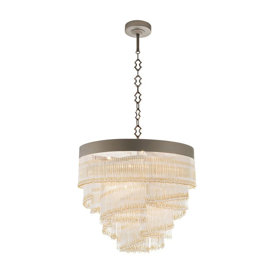 Luxury chandelier made according to the ancient venetian tradition with a hand-sewn fringe made of murano glass beads.