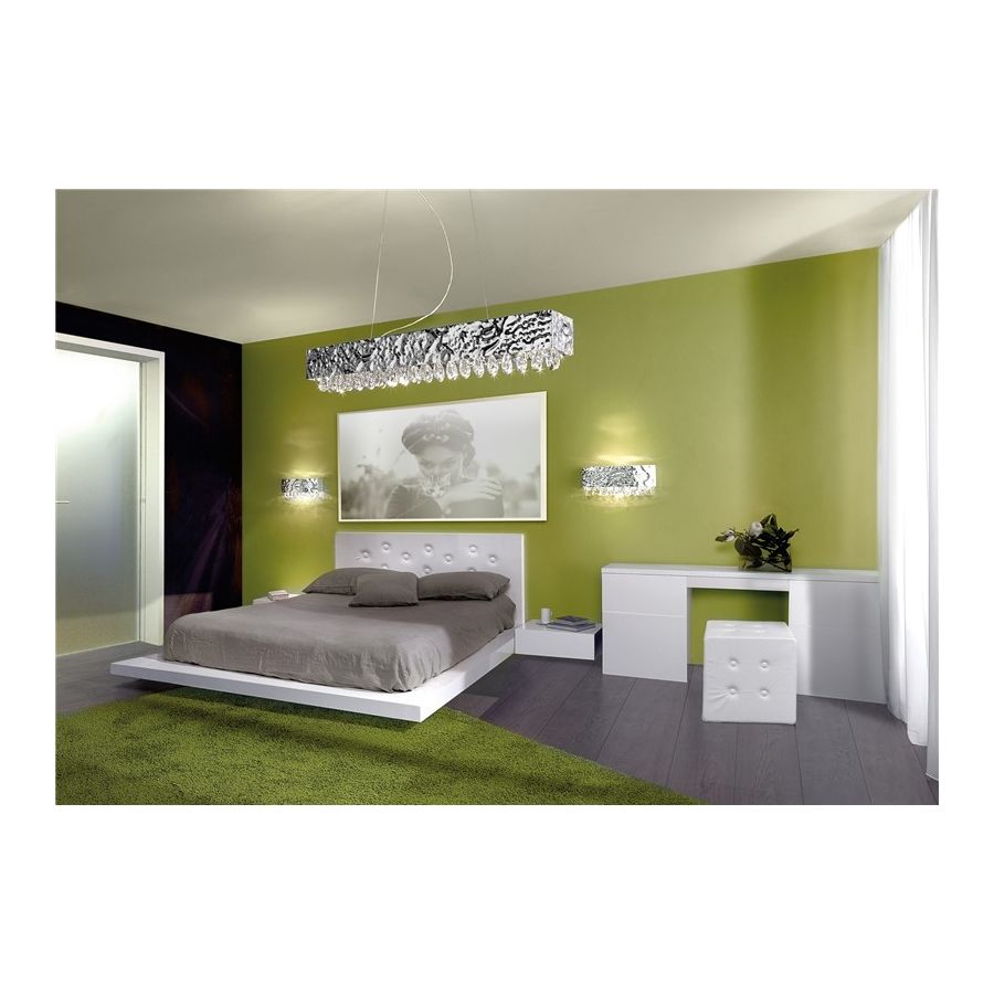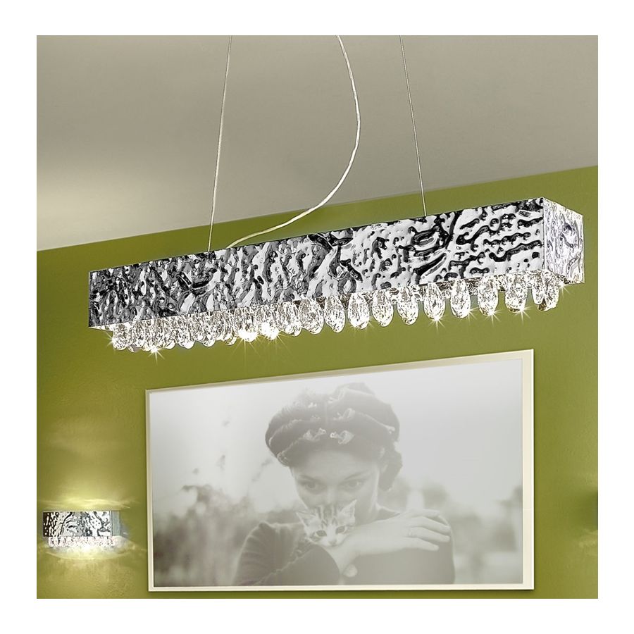 Rectangular ceiling light with a metal frame and coloured crystal drops, available in different colours and sizes.