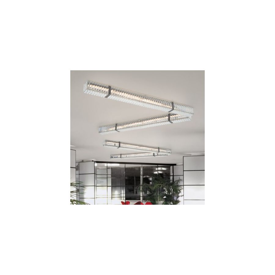 Rectangular led ceiling light with metal supporting structure and the purest crystal. Production and assembly 100% made in italy.