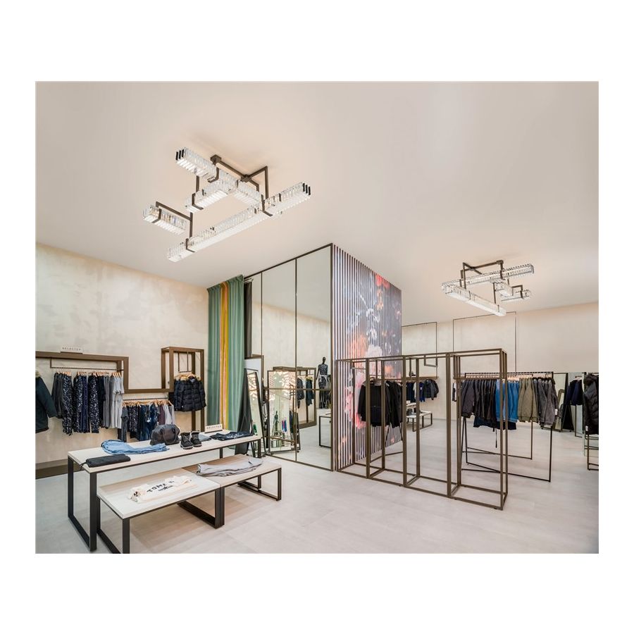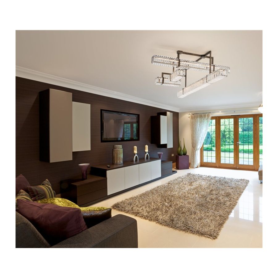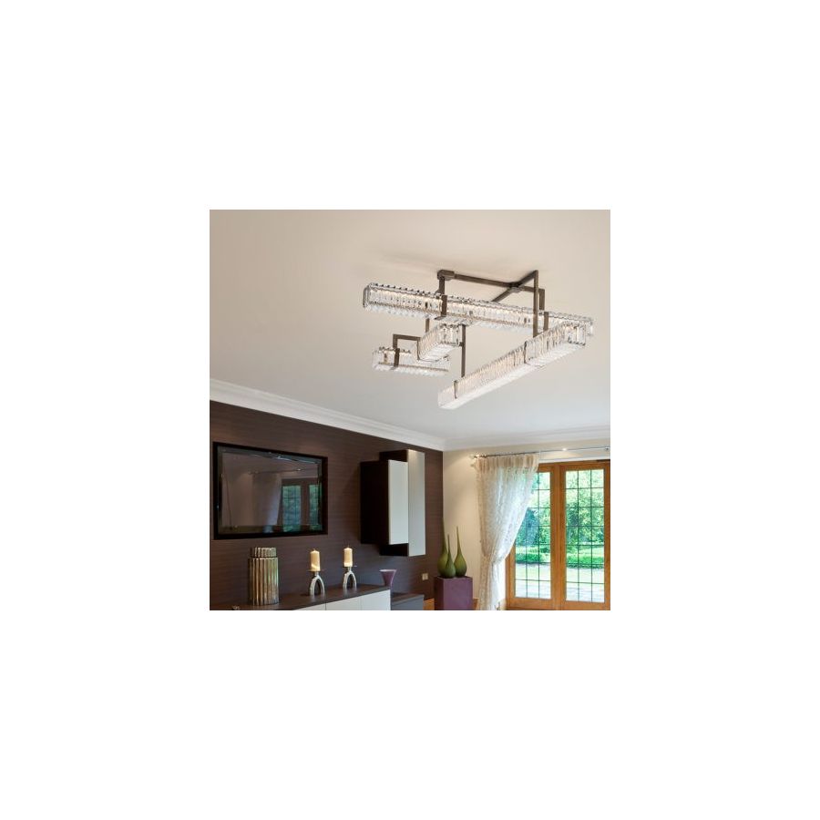 Rectangular ceiling light with combinable elements & metal supporting structure in different finishes and hand-ground crystal.