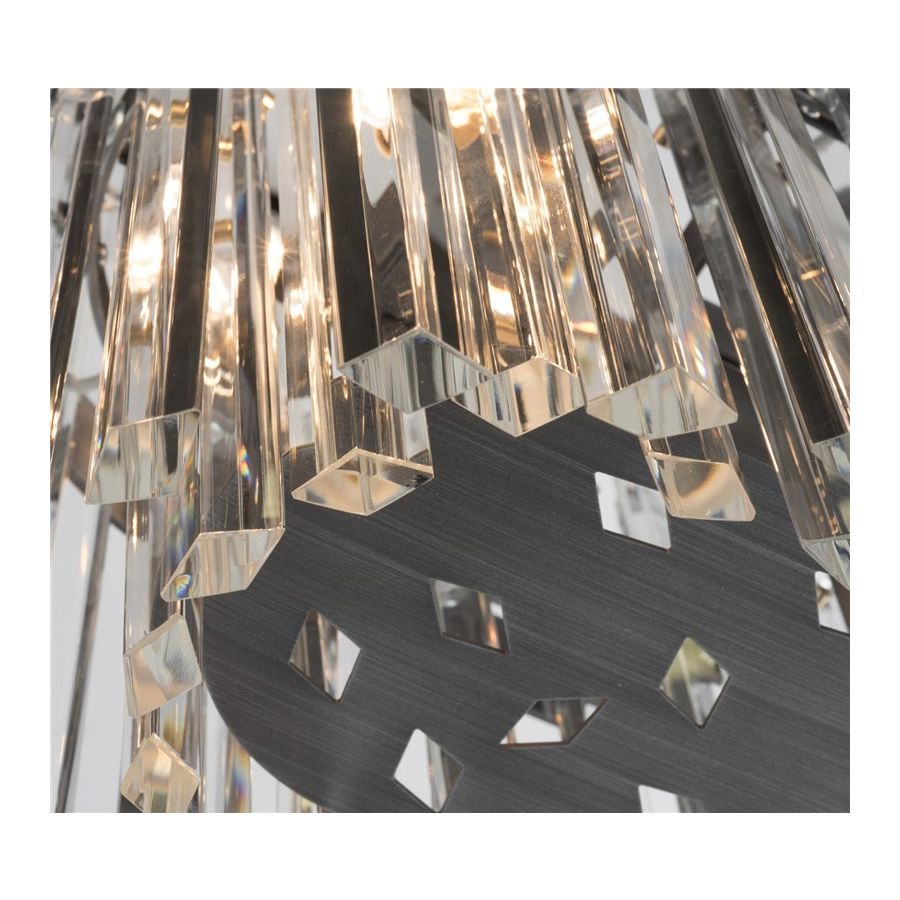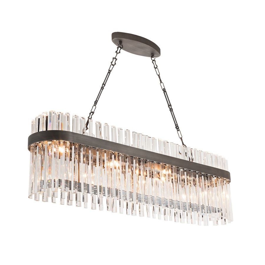 Chandelier with rhomboid-shaped pendants for perfect light refraction through the crystal.