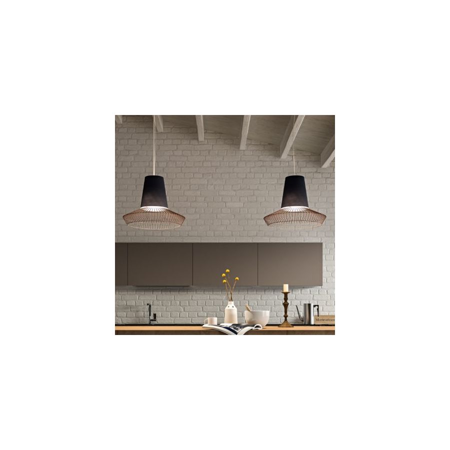 Lamp with a ceiling shade and a metal frame available in different finishes. Modern and refined pendant lamp.