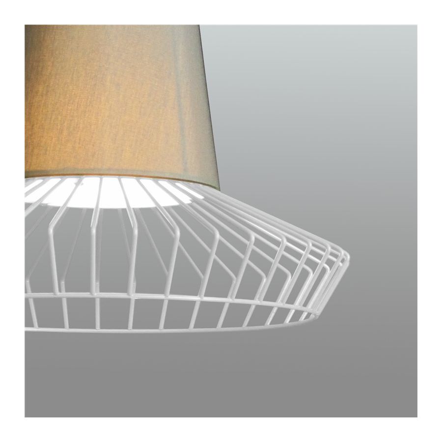 The chinette fabric diffuser, that has a thin layer of white polycarbonate to spread light, is available in the following finishes: concrete grey or charcoal grey.