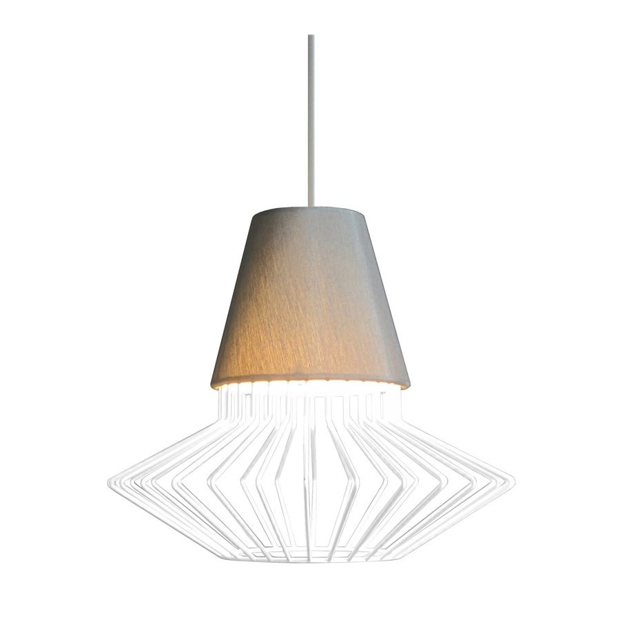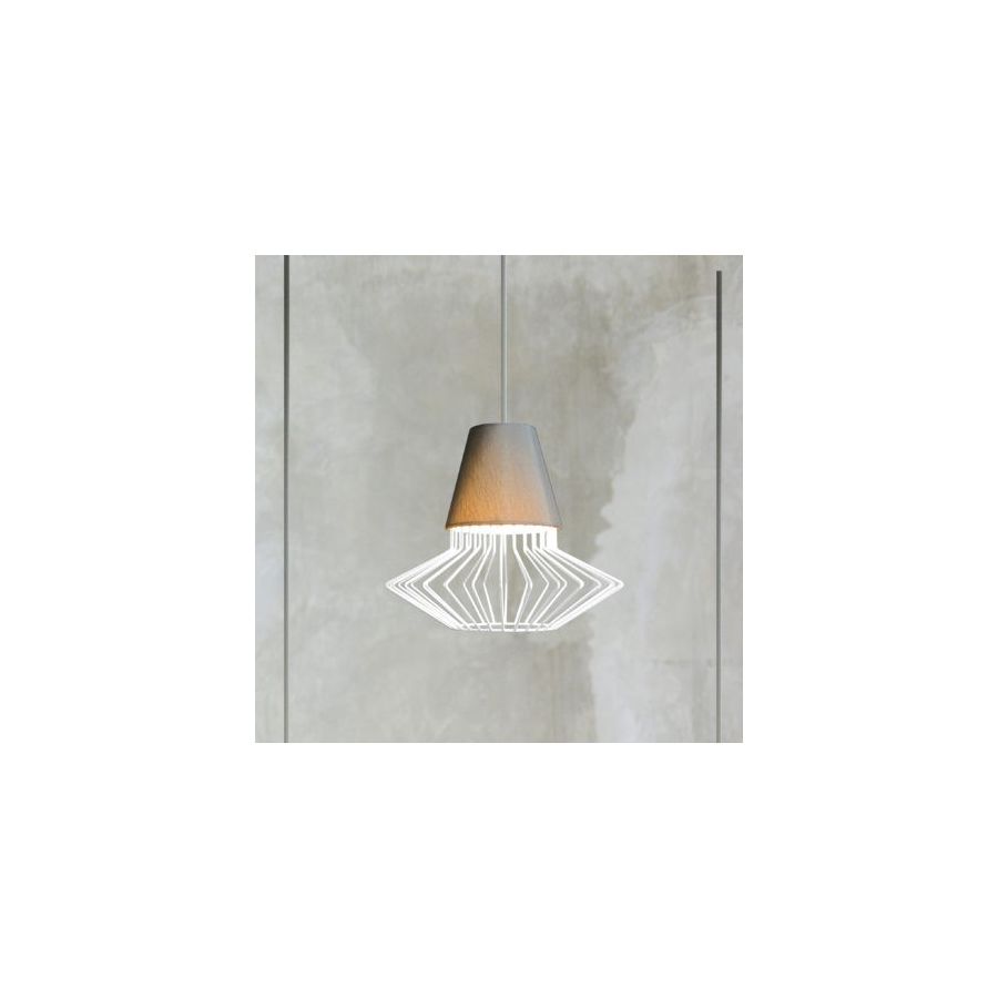 Pendant lamp with a metal frame, a lampshade and a decorative cage available in different finishes. Modern and sophisticated design.