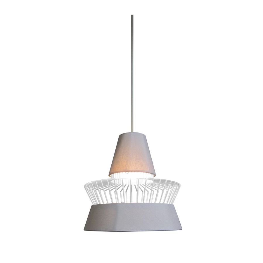 The chinette fabric diffuser, that has a thin layer of white polycarbonate to spread light, is available in the following finishes: concrete grey or charcoal grey.
