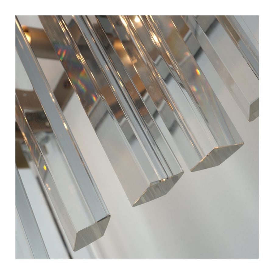 Optical crystal rods with a rhomboidal section and a perfect straight cut, for an impeccable effect of pure light and brightness.