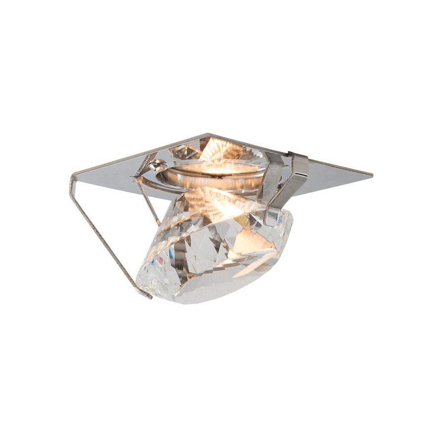 Spotlight with a diamond shaped structure in pure crystal and a frame in polished stainless steel.