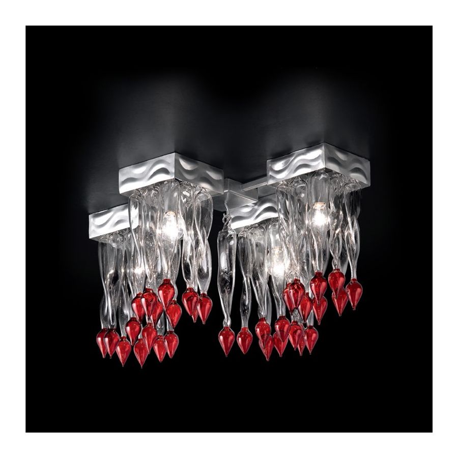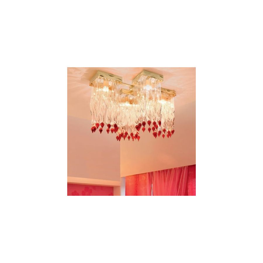 Led ceiling light with structure in lacquered metal with silver leaf and murano thermoformed handcrafted glass with transparent base and tip in glossy white or red. Ceiling chandelier ideal for all rooms in your house: kitchen, lounge, living area and bedroom. Original chandelier entirely produced in italy.
