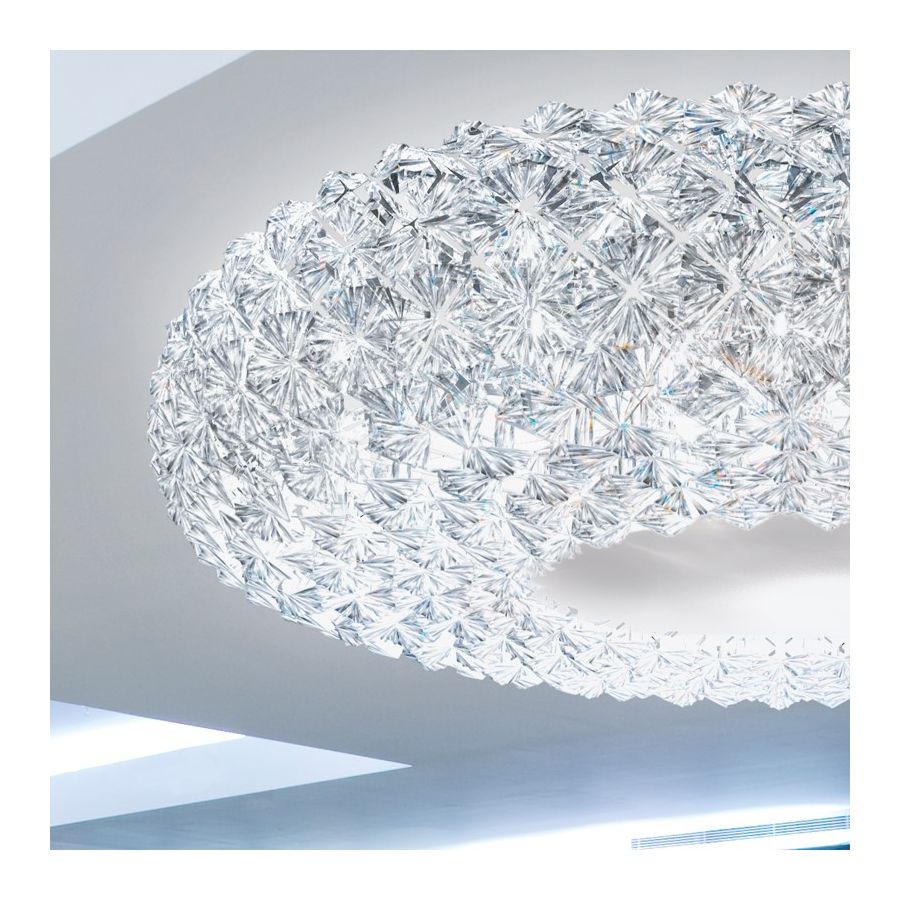 Lightweight ceiling light in multifaceted and very bright clear acrylic. Available in different sizes.