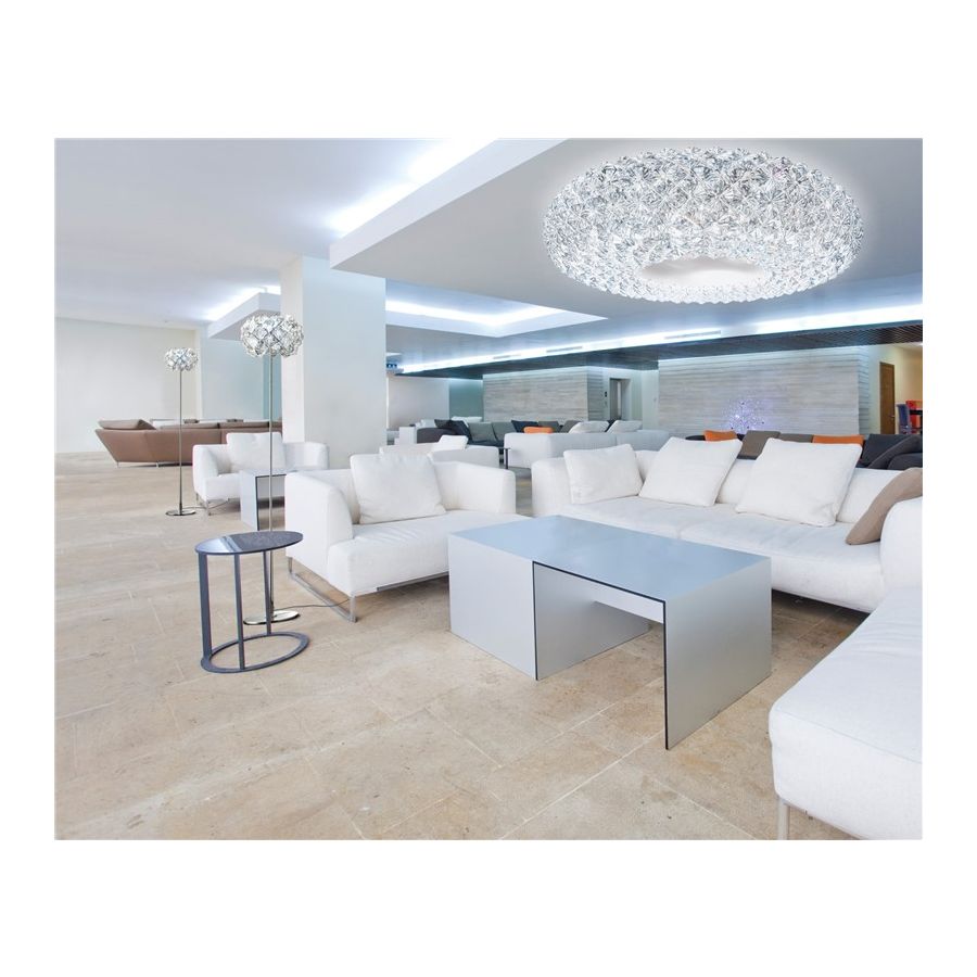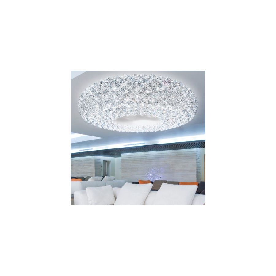 Acrylic multi-faceted prisms, of very high quality and extremely pure transparency, anti-yellowing notwithstanding time, form a round lampshade.