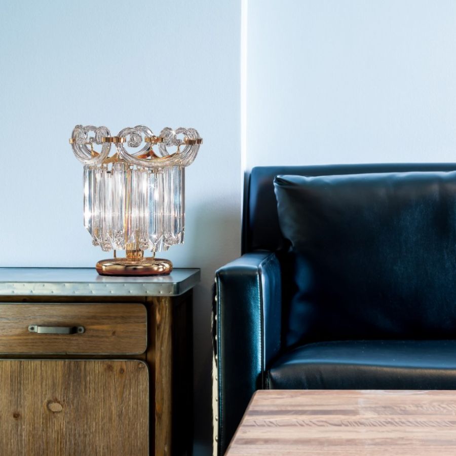 Table lamp with a modern, contemporary and sumptuous design, that perfectly adapts to the following home environments: kitchen, living room, lounge and bedroom.