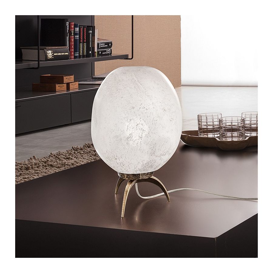 Table lamp with a refined and contemporary design that perfectly adapt to the following home environments: kitchen, living room, lounge and bedroomavailable with handblown murano glass with alabaster finish
