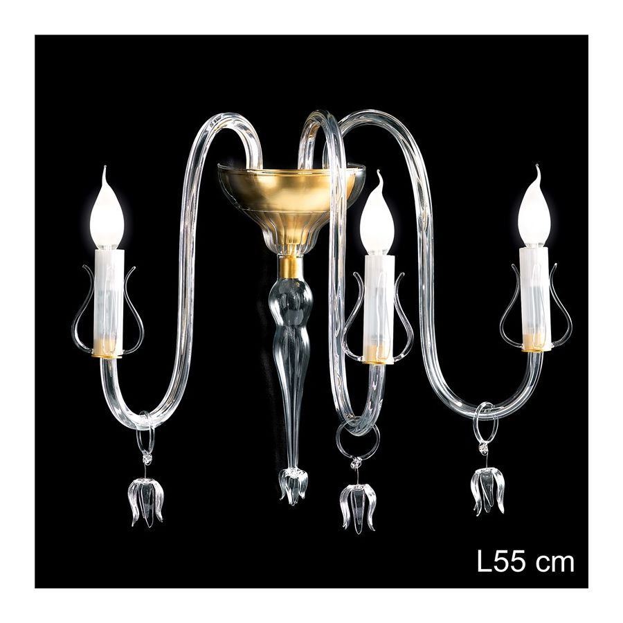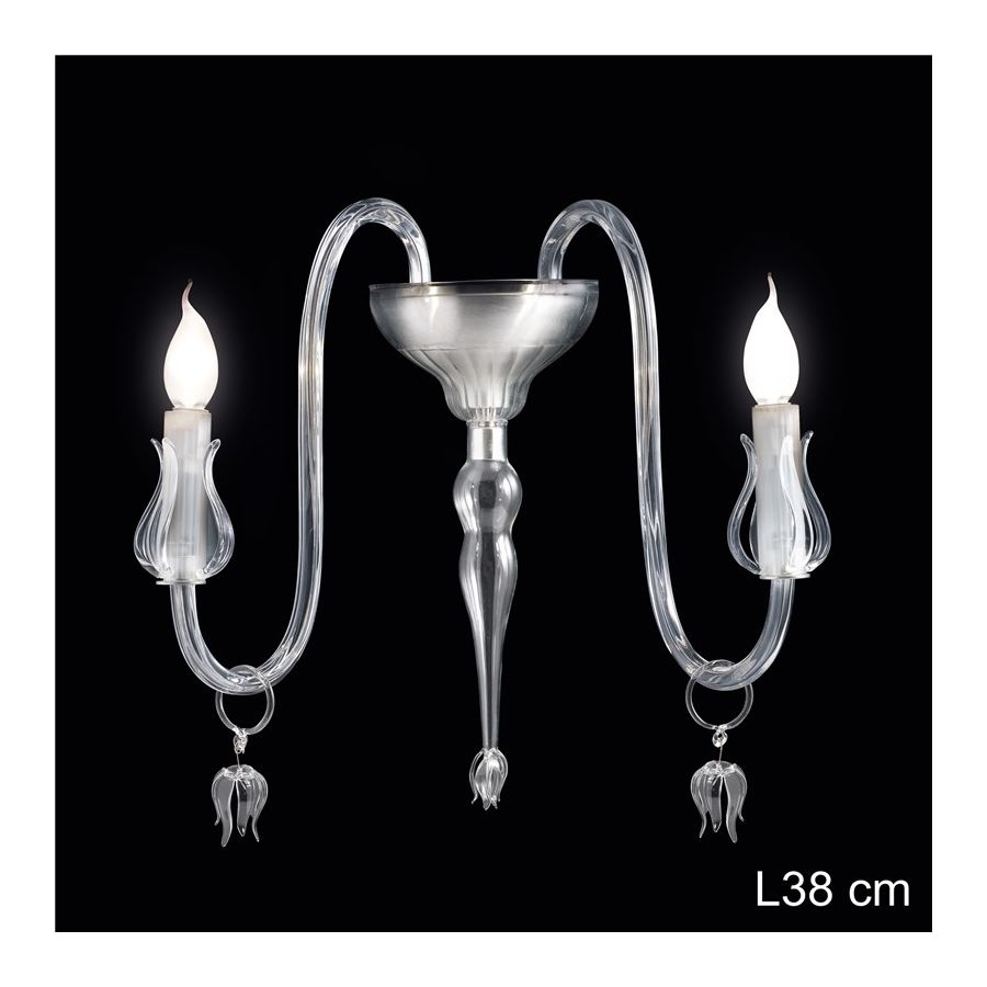 Classic design wall lamp in hand-blown glass by venetian master glass-makers. The model is available as clear or coloured.