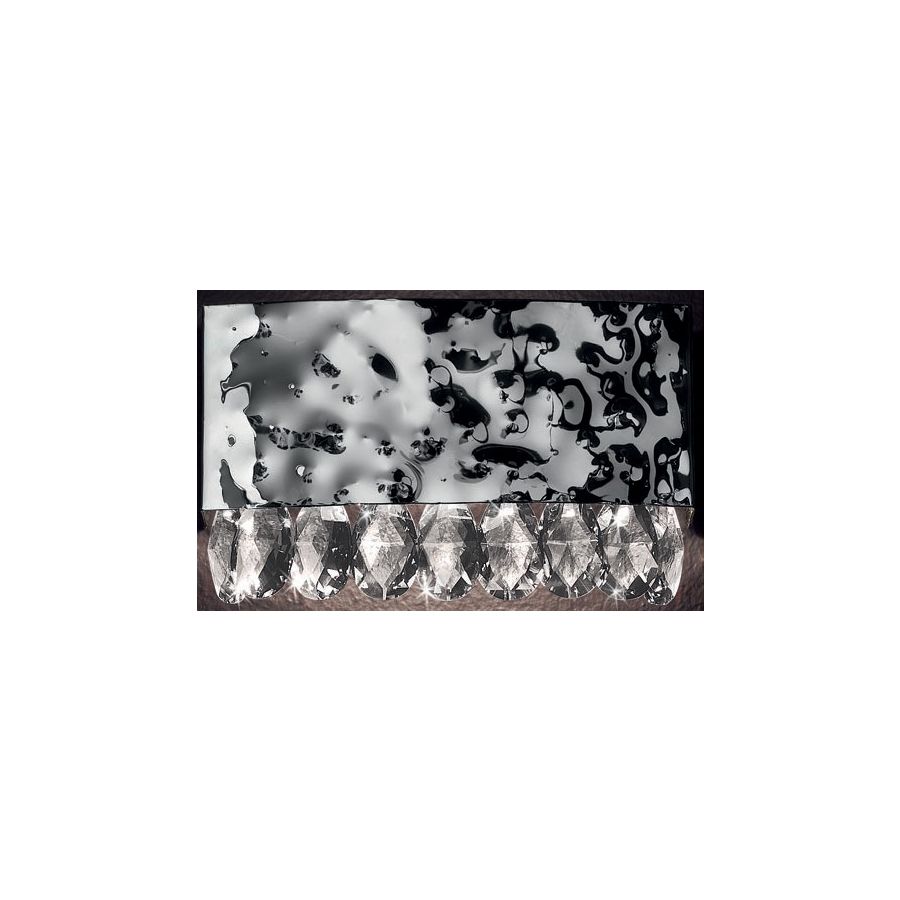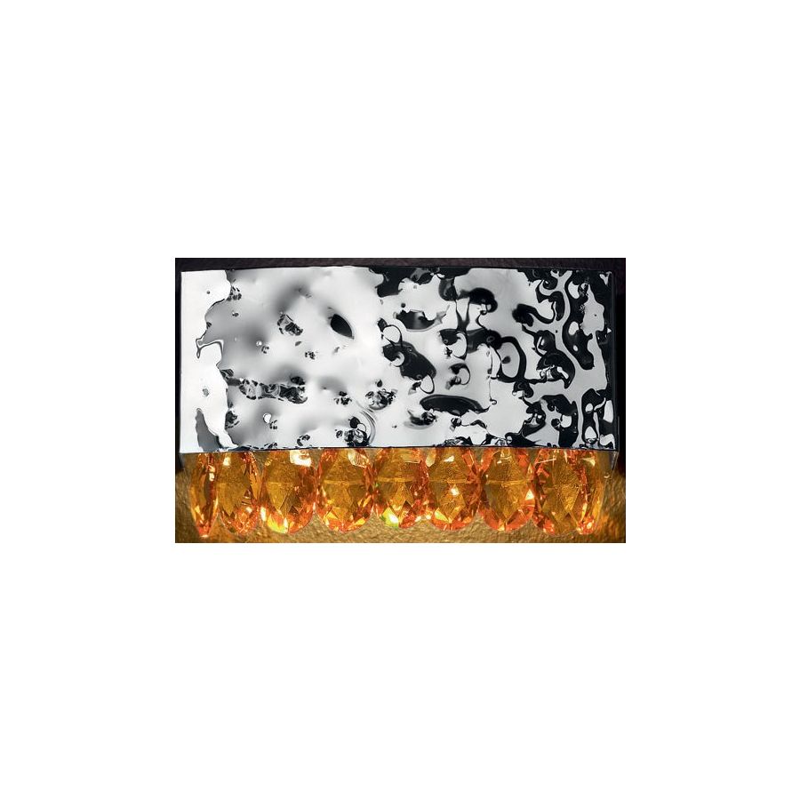 Wall lamp with a structure in hammered metal and coloured crystal drops.