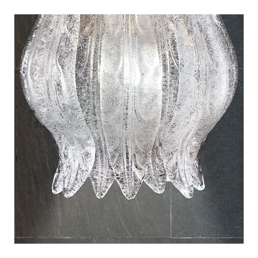 Handcrafted cast murano glass petals, available in white finish with glass grit.