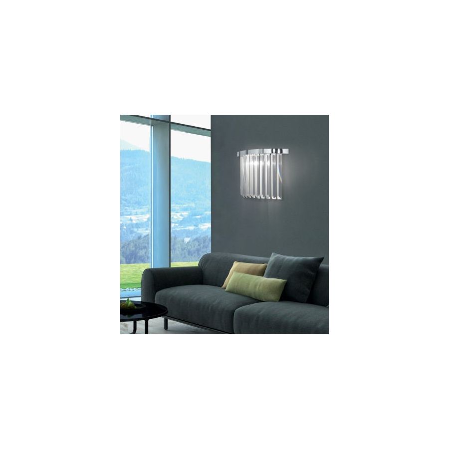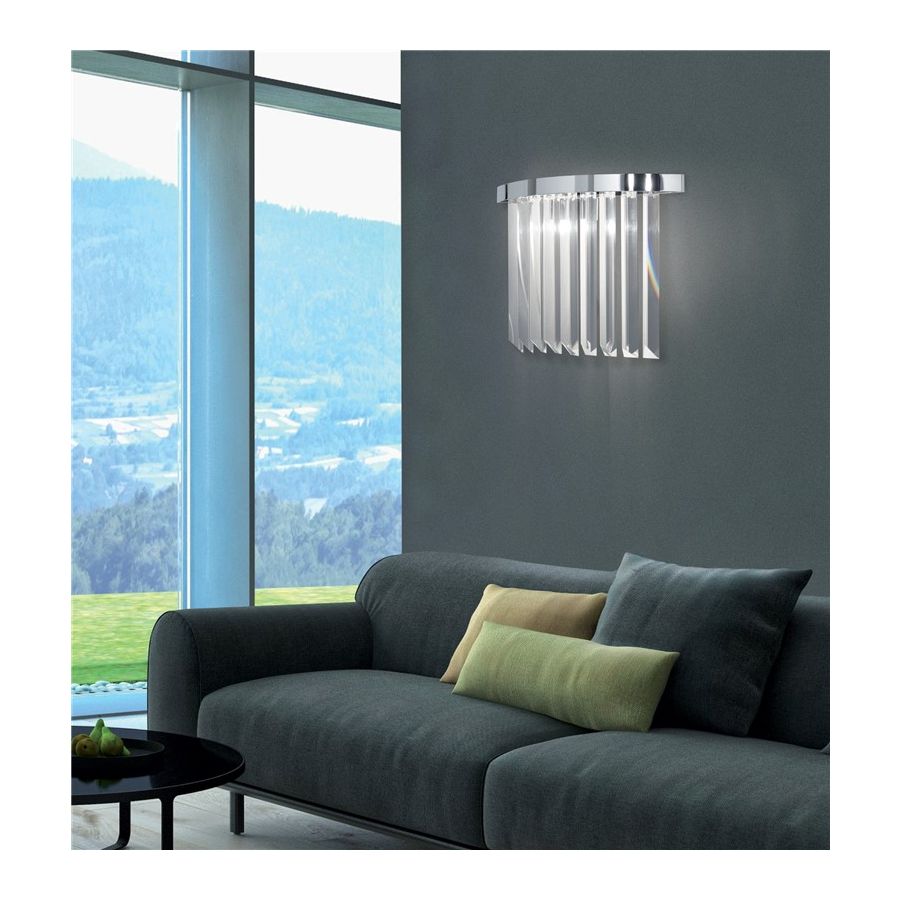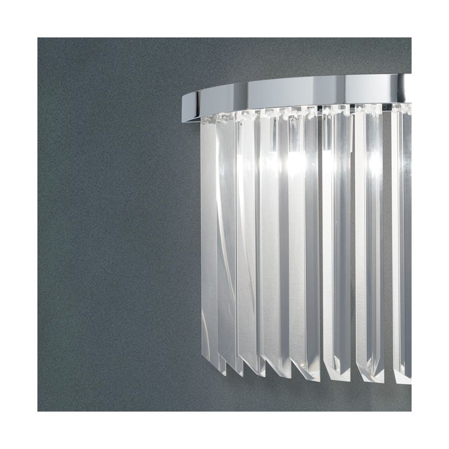 Wall light with a linear design in pure optical crystal with a brilliant light effect. 100% Made in italy.