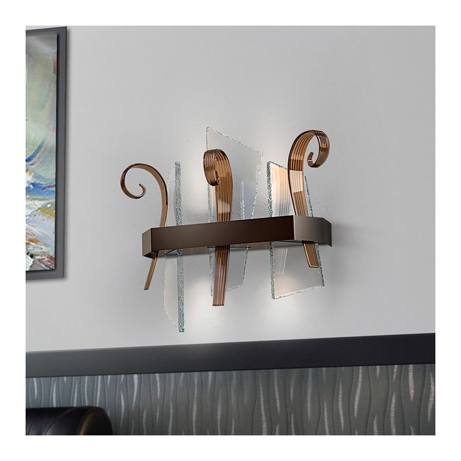 Wall lamp with a refined design with murano glass croziers handcrafted by master glass-makers according to the venetian artisan tradition.