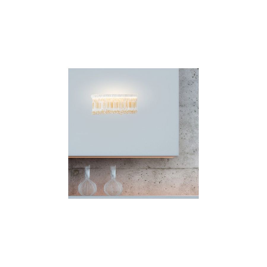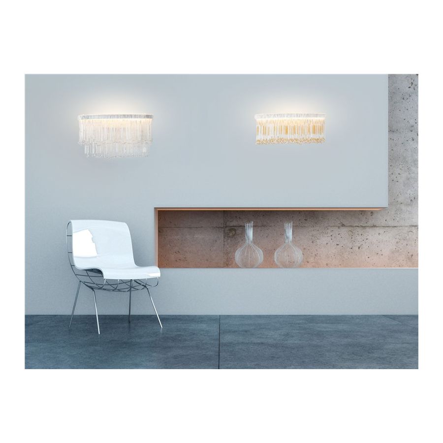 Wall light with a hand-sewn fringe made of murano glass beads, according to the ancient venetian tradition. Wall light combinable with a chandelier and other lamps