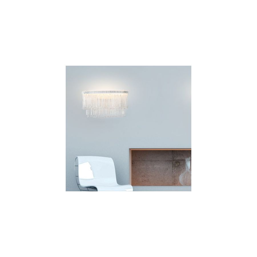 Handcrafted wall light with a fringe made of murano glass beads, hand-sewn according to the ancient venetian tradition. Find out more!
