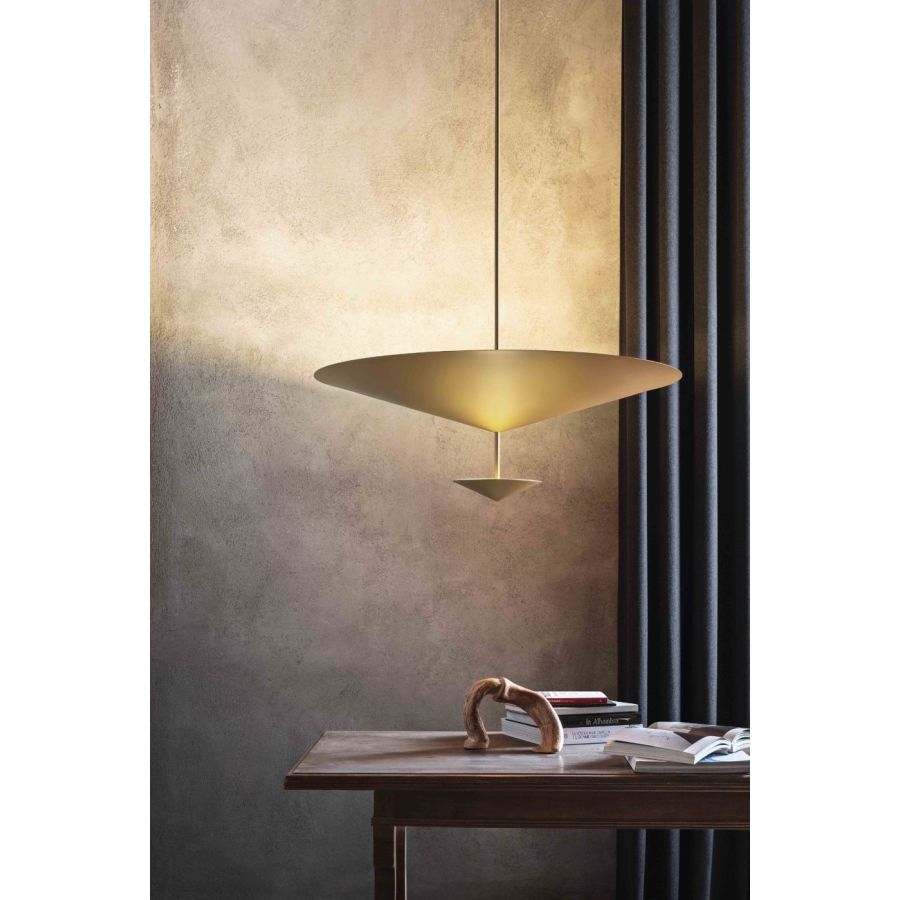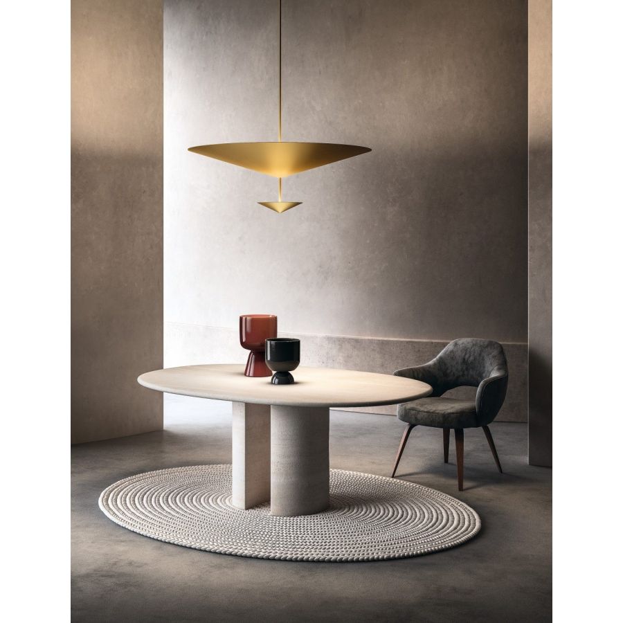 The solid structure and minimalist lines of the Narciso floor version accentuate its strong visual presence within the space. The symmetrical form creates an interesting contrast between the base and the lighting element, reflecting the concept of reflections that inspires the entire collection.