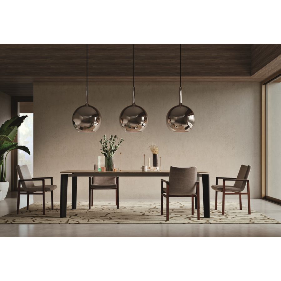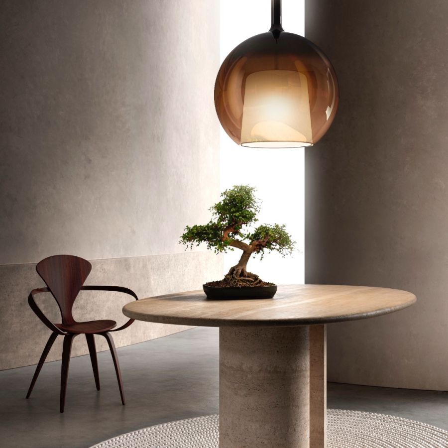 Glo is an icon of our collection, a glass sphere enhancing the glare of light, in a game of reflections back and forth between the lamp and the space or among the very lamps.