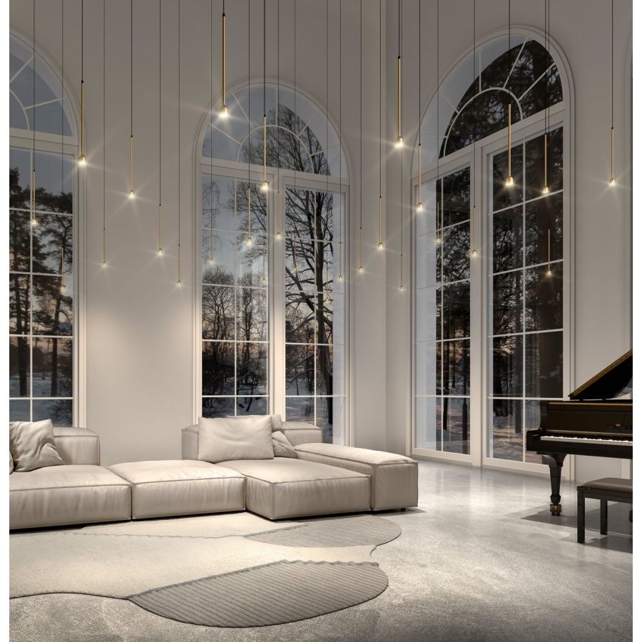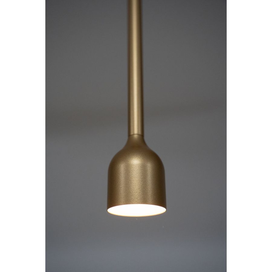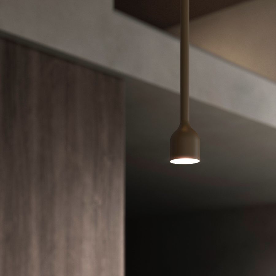 Conceived as an evolution of the Wonder and Storm collections, Hail is a ceiling lamp providing downward directional light. A long and essential metal stem opens up into a magical shape – a little bell. With its minimal and well-balanced shape it can be used either individually or be repeated in free multiple configurations.
