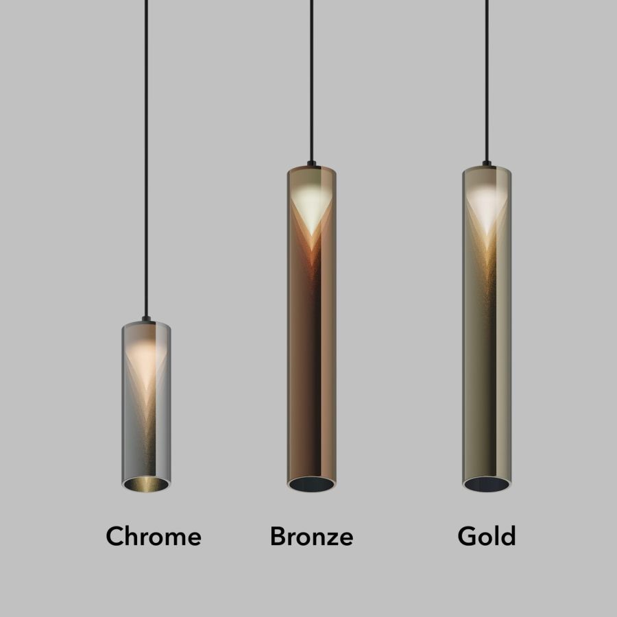 Collection of lamps available in short and tall sizes made of borosilicate glass. Mirrored finish: bronze, gold and chrome. Can be used as a single or multiple element.