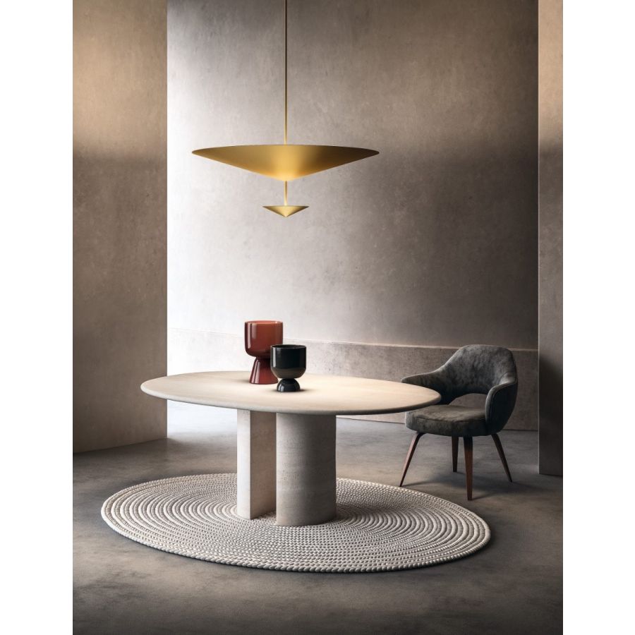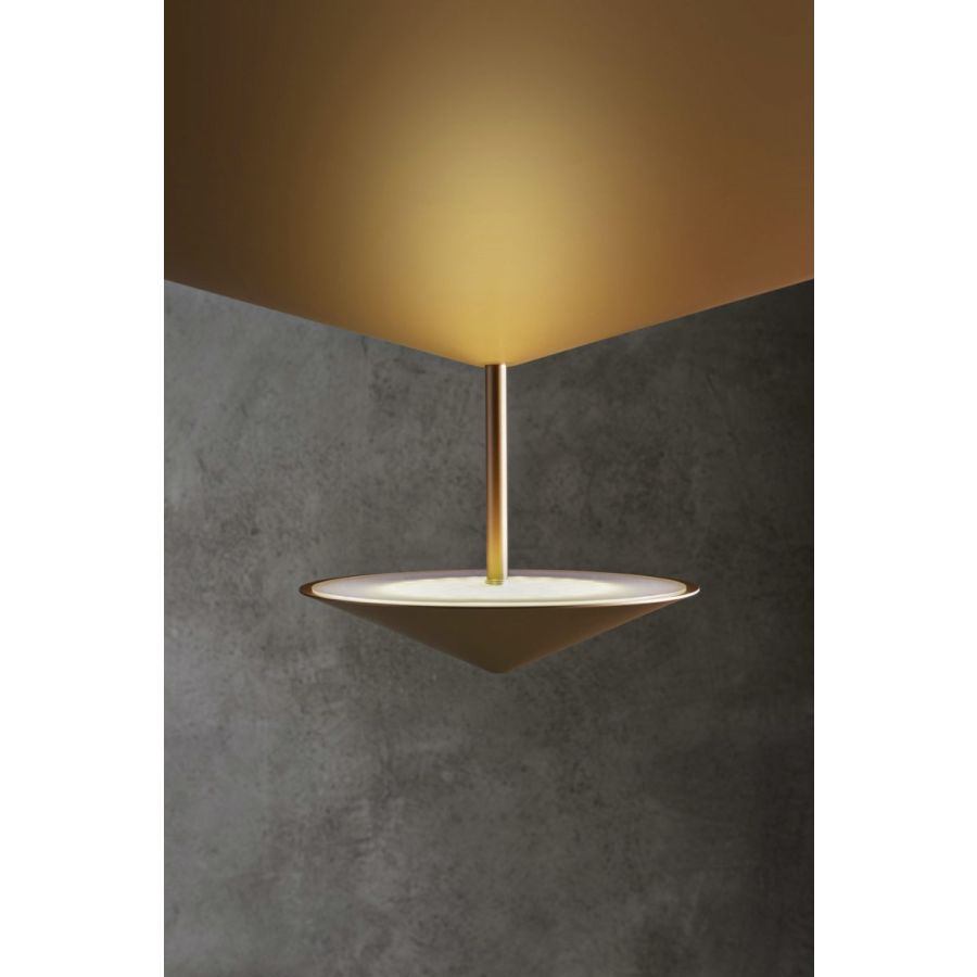 As in the classic myth Narciso looks at his image reflected in the water, likewise the cone of this lamp splits up to spread and reflect the delicate light of the lighting body.