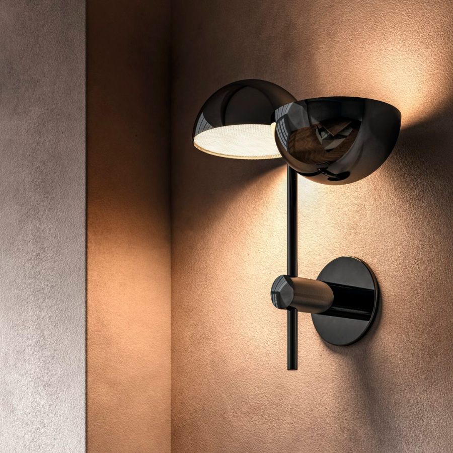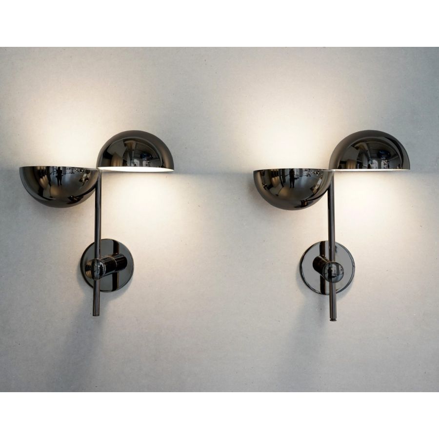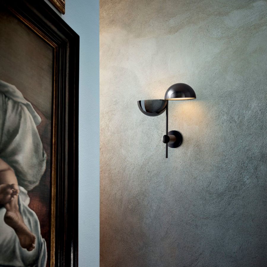 In its most essential version, Elisabeth applique stands out with its two polished chrome hemispheres, which produce bidirectional light on the wall. This design allows for uniform and effective illumination, combining simplicity and functionality.