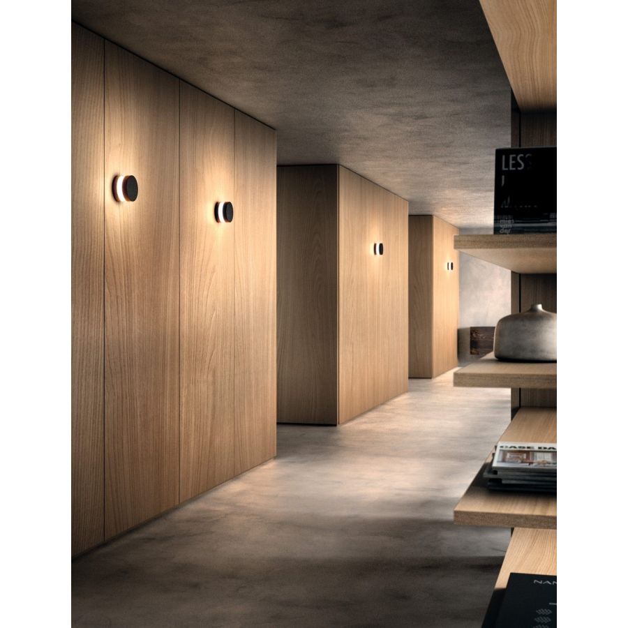 Ludo is a wall lamp inspired by a solar eclipse. Its two-level cylindrical structure creates a striking light effect reminiscent of the solar corona when viewed from the front.