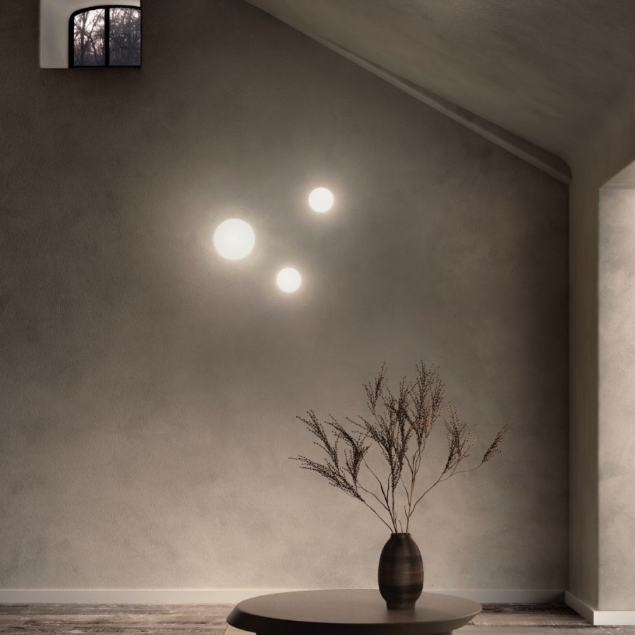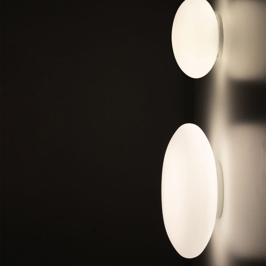 In the wall or ceiling version the glass element becomes the absolute protagonist. The project not only enriches its proposals but also undergoes technical renewal, thanks to a lighting engine that ensures perfectly uniform light diffusion.