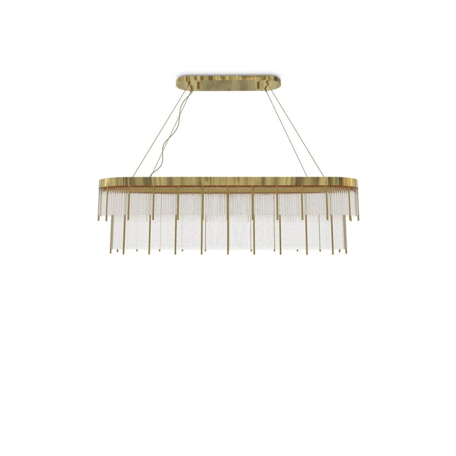 Inspired by the commanding presence of lighthouses, the Pharo Snooker Suspension Lamp reinterprets architectural strength with refined elegance. Crafted from gold-plated brass and adorned with delicate crystal glass, it balances robustness with luminosity. Designed for snooker tables or elongated spaces, this piece brings structure, clarity, and sophistication to any interior.