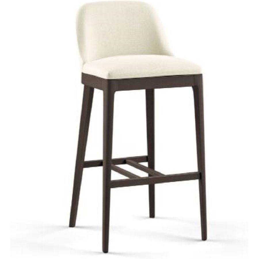 Stool with frame in solid beech and poplar plywood. Padding in elastic polyurethane foam. Legs in solid beech. All the upholstered elements are available in leather, synthetic leather or fabric.