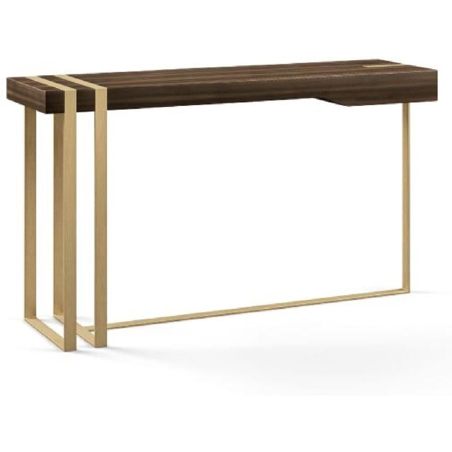 Console in smoked eucalyptus veneered poplar plywood with painted metal structure.