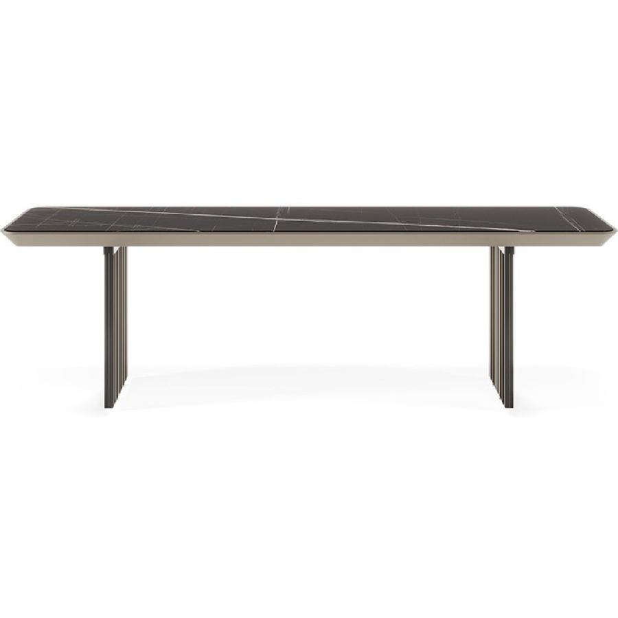 Top in Bevel Wood Canaletto walnut or Canaletto Henné, Bevel Wood Bronze (100M) finish with cover in Marmoreflex/Legnoreflex or Bevel Wood Bronze (100M) with cushion in fabric or leather with quilting.