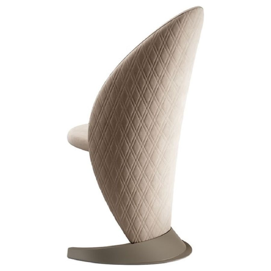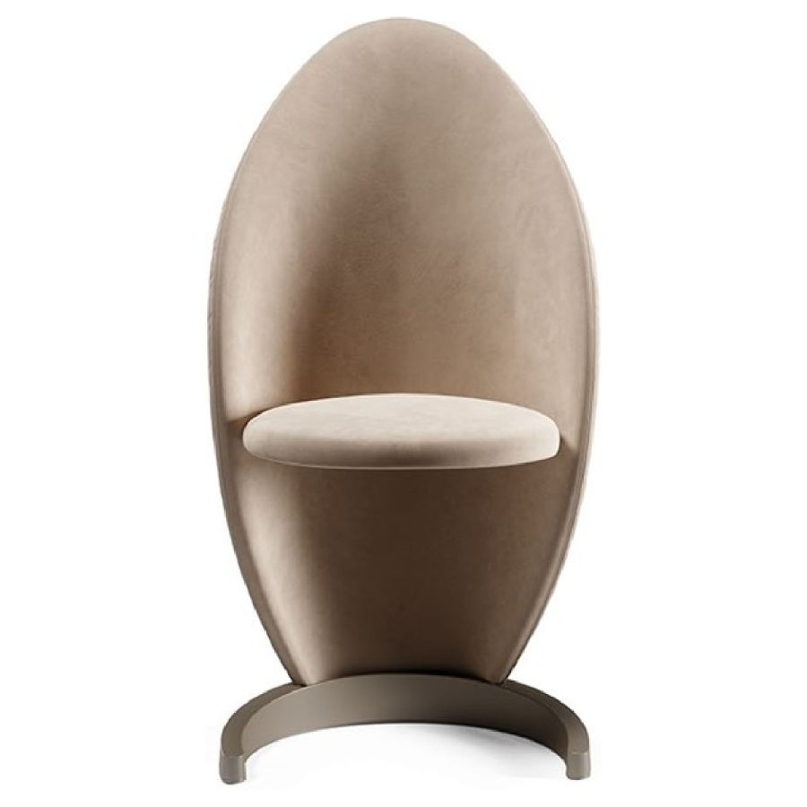 Chair with padded wooden frame and upholstered in leather or fabric. Base in Bronze, graphite or titanium finish. Optional armrests and quilting on the backside.