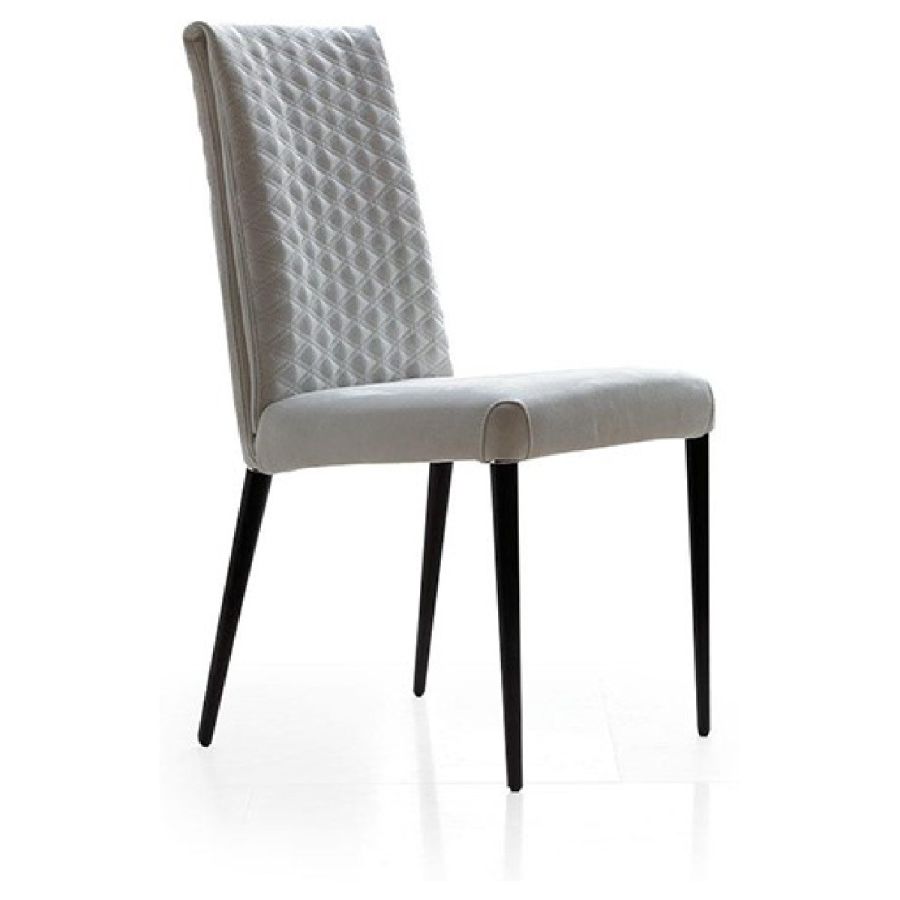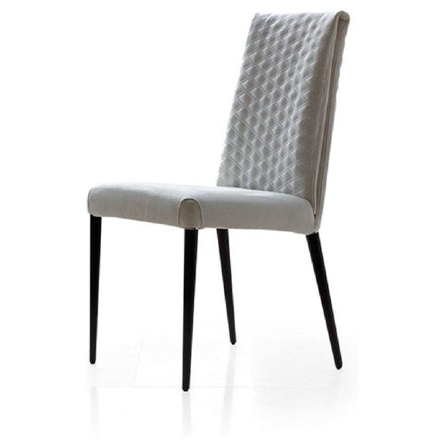 Chair with internal metal structure and upholstery in leather or fabric with Emerald quilting on the backrest. Upholstered legs or in wood in shiny nero beluga, Oakwood Beluga or Bronze finish. Optional armrests in Oakwood Beluga