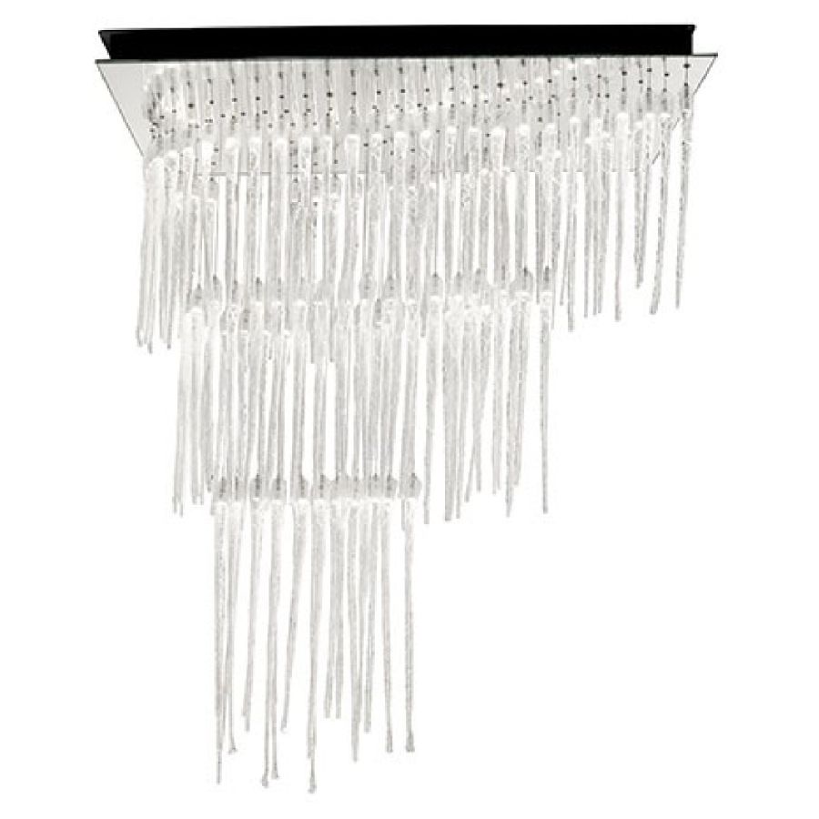Chandelier with mirror glass support and suspended solid Murano glass elements with LED inside. Allows various types of customizations for dimensions and shapes