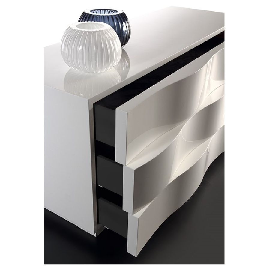 Chest of 3 or 4 drawers with shaped curved fronts.Available in matt or shiny lacquered finish. Plinth in black matt.