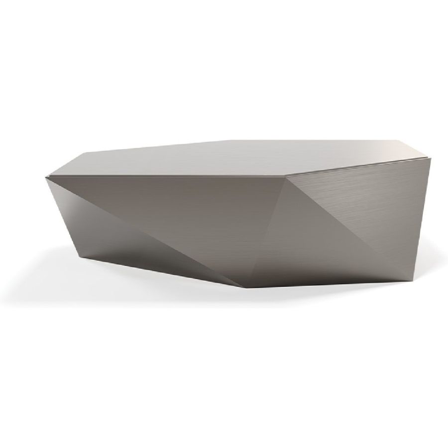 Coffee table in faceted wood in Bronze, brass, dark brass, titanium finish with matching glass top. Also available in Canaletto walnut/Canaletto Hennè with top in Bronze mirror glass.