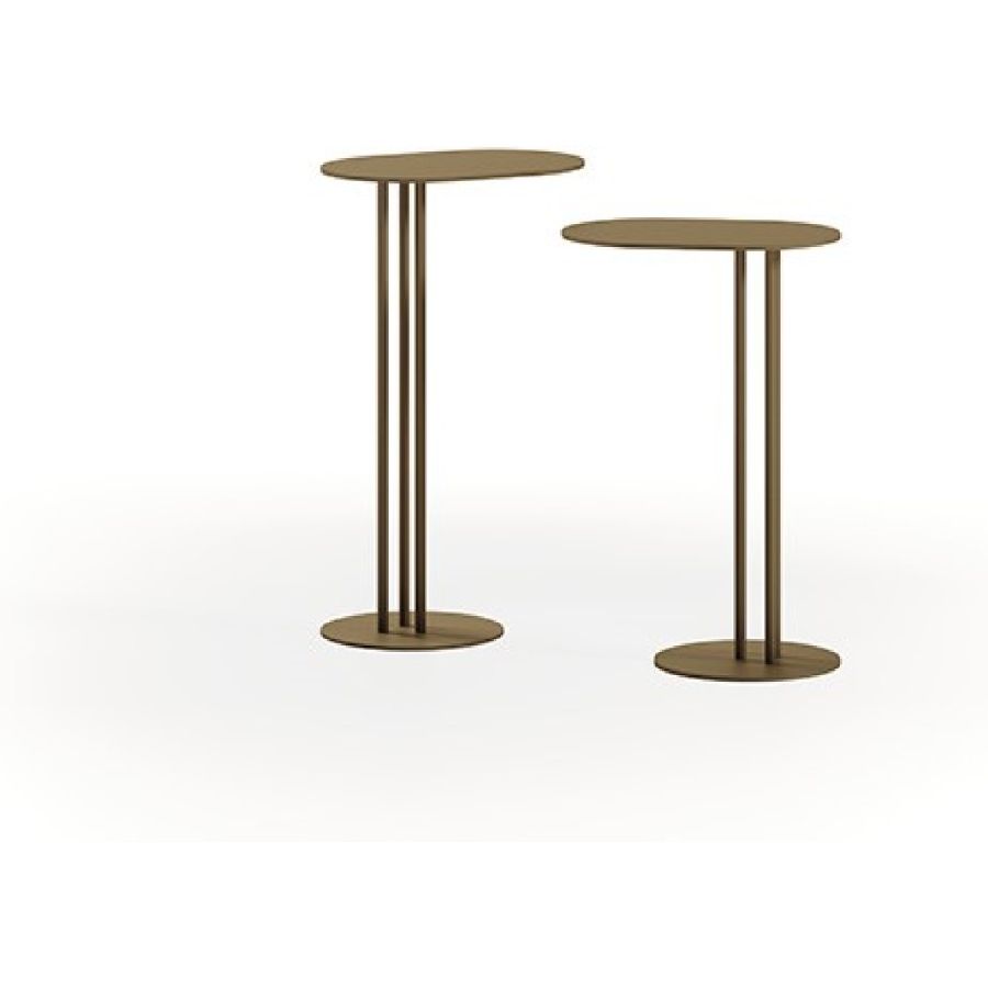 Coffee tables in metal with bronze finish or satin-finished brass, dark brass, or titanium.