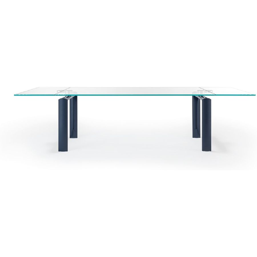 Special edition to celebrate the 30th anniversary of the iconic Policleto table design. Legs have an oval section with a lacquered finish and are not colored Wine Red, Coral Red, Iron Grey, Steel Blue, Blue Green. Optional transparent water glass top.
