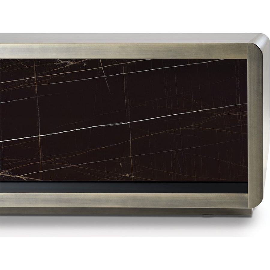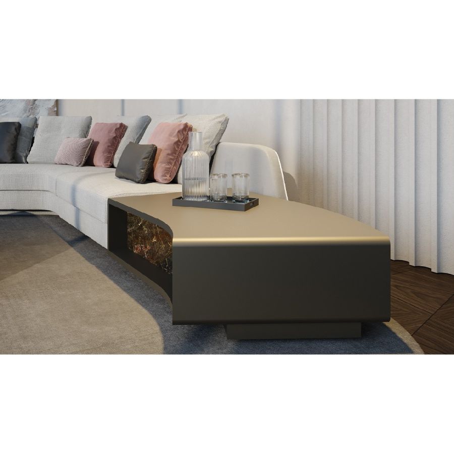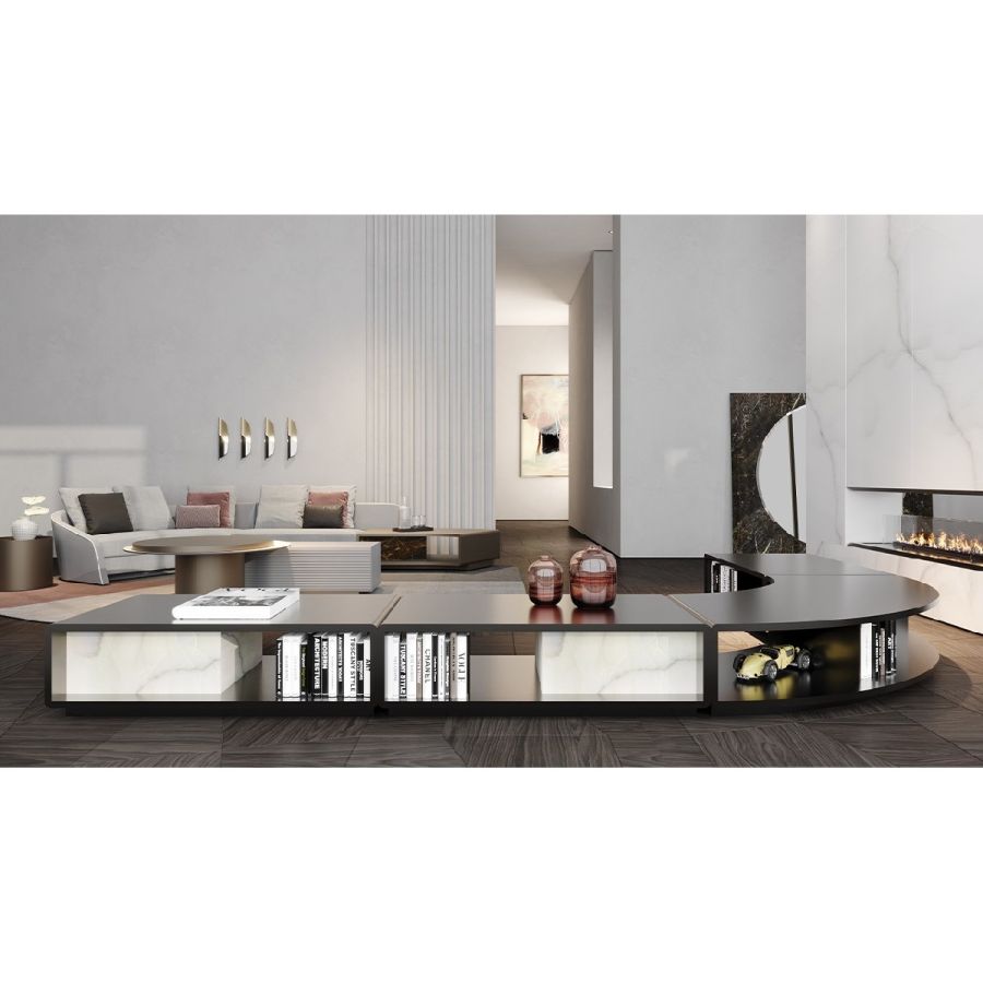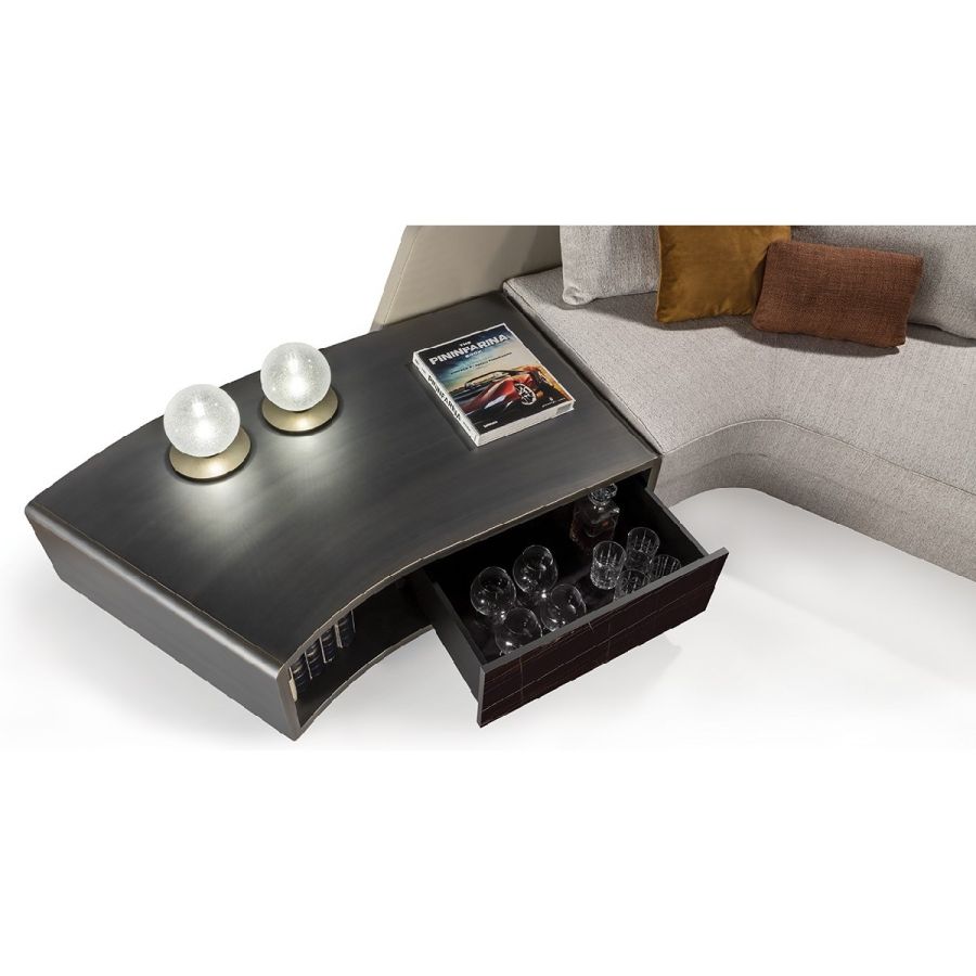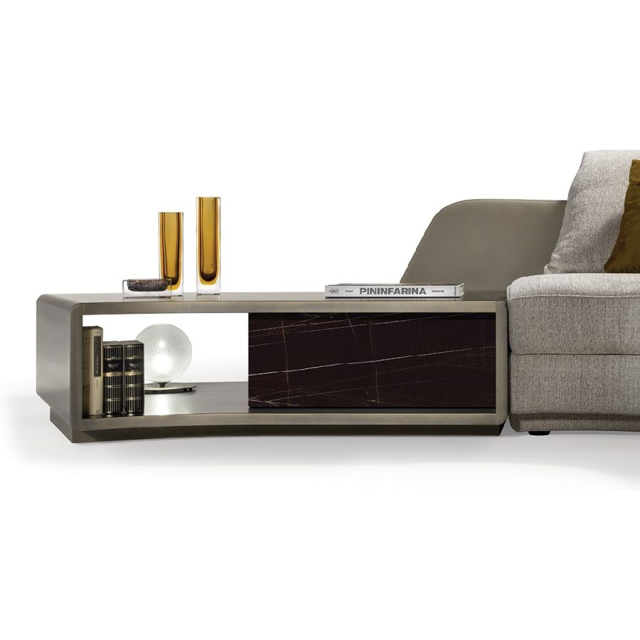 Modular low table/storage unit in wood in Bronze (100M), brass (104M), dark brass (105M), titanium (101M) finish. Plinth in bronze (100M) finish.