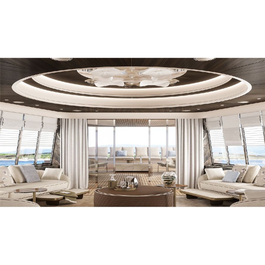 Decorative module in mirror glass 8 mm thick for installation to the wall or to the ceiling. White and iridium-amber flowers elements in Murano glass with LED lighting.