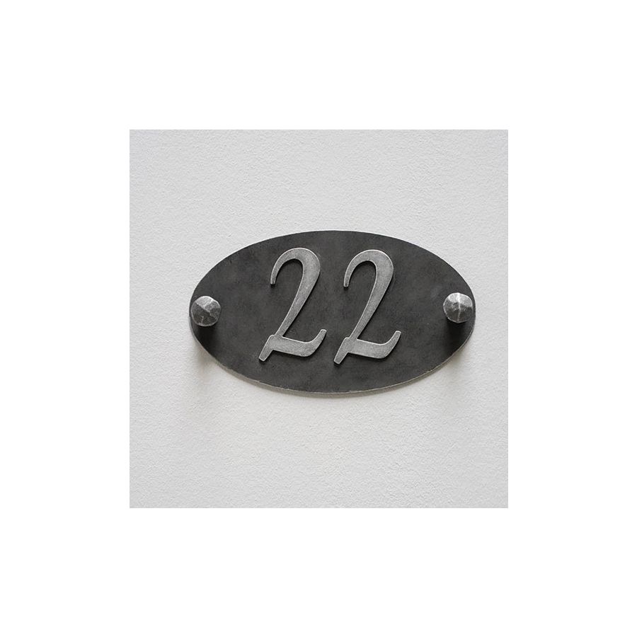 Denna handgjorda husnummerskylt kombinerar exakt funktionalitet med förfinad arkitektonisk design, och skapar en distinkt detalj för varje yttre fasad. Dess eleganta ovala form och upphöjda siffror ger utmärkt synlighet samtidigt som de tillför en sofistikerad dekorativ accent till entréområdet.