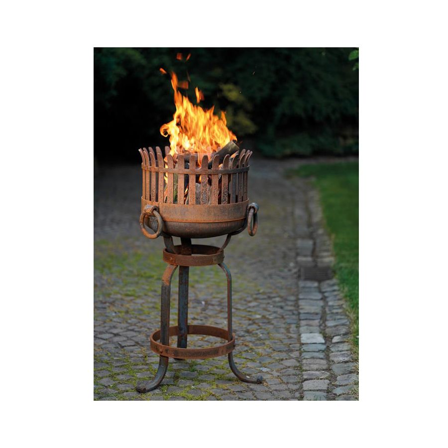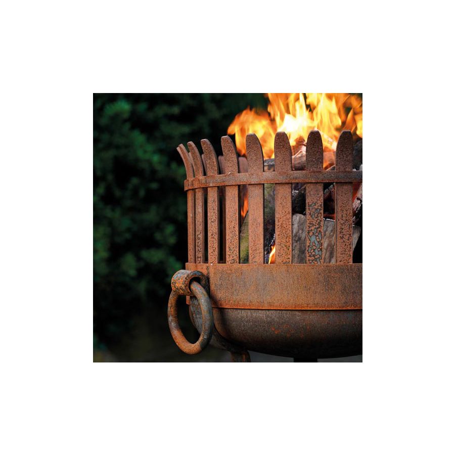 Den upphöjda konstruktionen förbättrar luftflödet för effektiv förbränning och placerar elden på en optimal höjd för betraktning, vilket ökar både komfort och visuellt genomslag. Integrerade sidohandtag framhäver den traditionella smidesdetaljen samtidigt som de tillför praktisk funktionalitet.