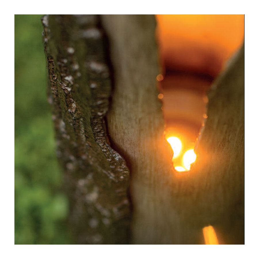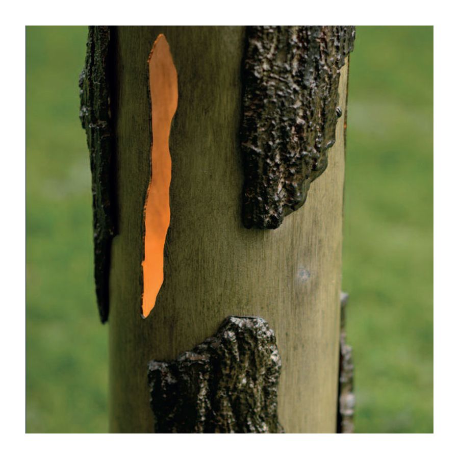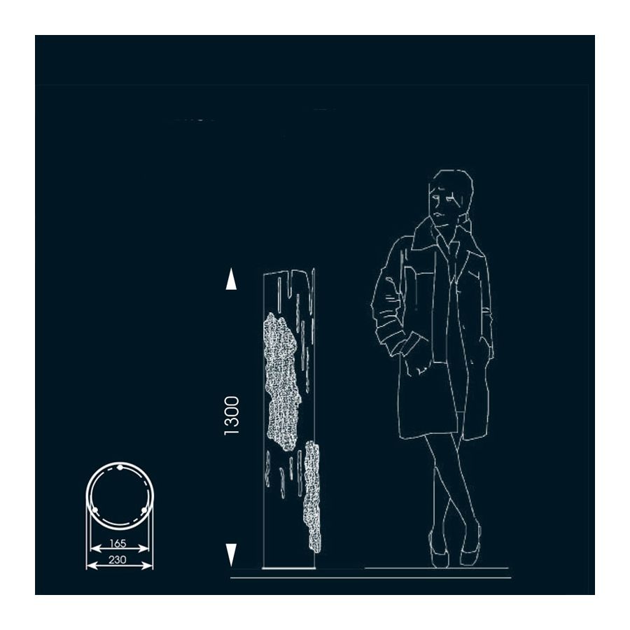 Denna höga stolplampa från Robers (Tyskland) utmärker sig genom sin exceptionella design. Den är tillverkad av två material - trä och smidesjärn - och har utseendet av en trästam. Järndelen är utformad på ett sådant sätt att den får en perfekt likhet med ett verkligt träd. Medan stammen är tillverkad av äkta trä är barken av järn målad i en träfinish. Lampan har en specifik cylindrisk form som återger de ojämna kanterna och hålen vi ser i verkliga trädstammar. LED-lampan är placerad inuti med ett nedre monterat fäste, vilket ger ett mjukt och varmt ljus. En sådan lampa är en vacker dekoration för trädgården, entrén eller gården, som visar ägarens utmärkta smak.