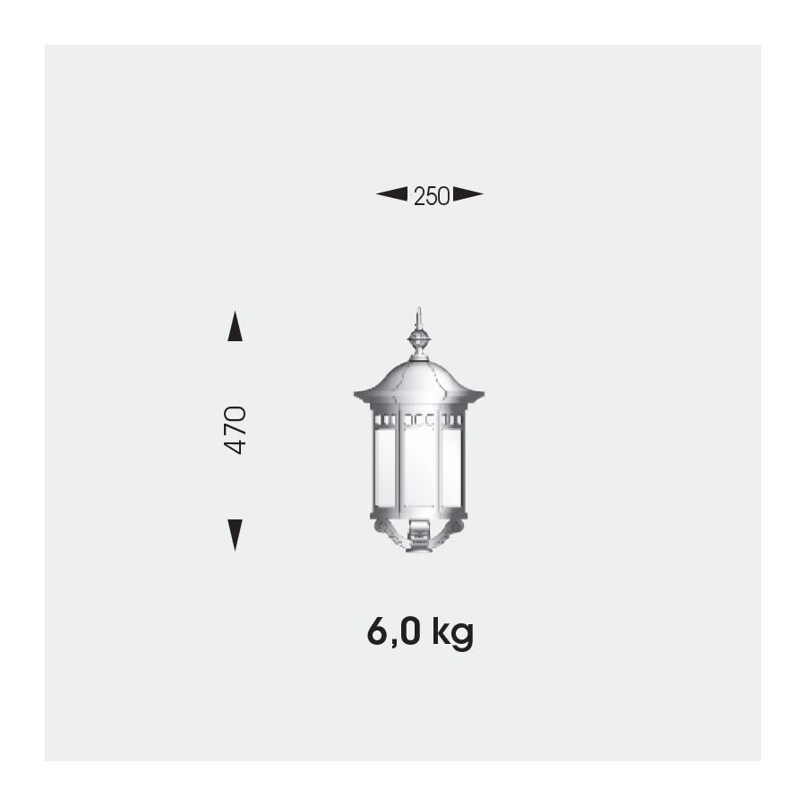 Denna pollare från Robers (Tyskland) är en verkligt viktoriansk design. En rund bas stöder en kolonn dekorerad längs hela längden med olika ornament. Den traditionella lanternan fungerar som en lampa: ramen i hexagonal form, de plana järnstängerna för att skydda och pryda rutorna, den breda remmen som förbinder ramen med taket, och en klassisk toppknopp. Lampans skärm i munblåst glas har en antik yta för ett varmt ljus. Lampan är försedd med en nedre hållare för glödlampan. Armaturen är helt handgjord av smidesjärn med 10 olika ytbehandlingar att välja mellan. Lampan kommer att bli ett verkligt blickfång i trädgården och bidra till säkerheten.