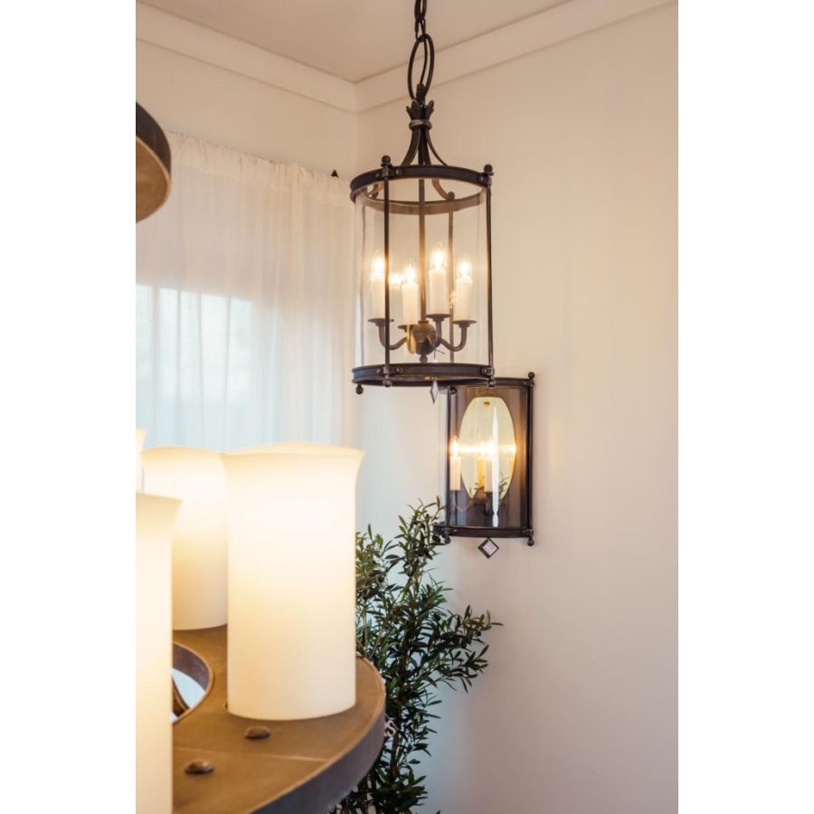 Denna stora utomhuspendellampa från Robers (Tyskland) är tillverkad i stilen av den klassiska facklan. Den tillhör kollektionen “Utomhus” och utmärks av hållbarhet och robusthet. Dess bas, öglan och kedjan som förbinder lamporna med takrosetten är alla handgjorda av hårt stål. Lampskärmen är gjord av munblåst glas i klart utförande. Lampskärmen täcker 4 ljus med lamporna. Armarna har eleganta böjda linjer och förenas till en genom bottenkulan.